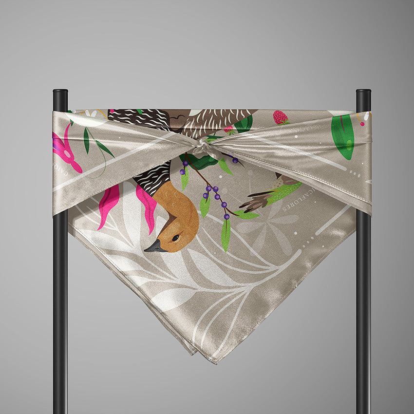 Pañuelo Seda Caiquenes y Picaflores 60Pañuelo Seda Caiquenes y Picaflores 60